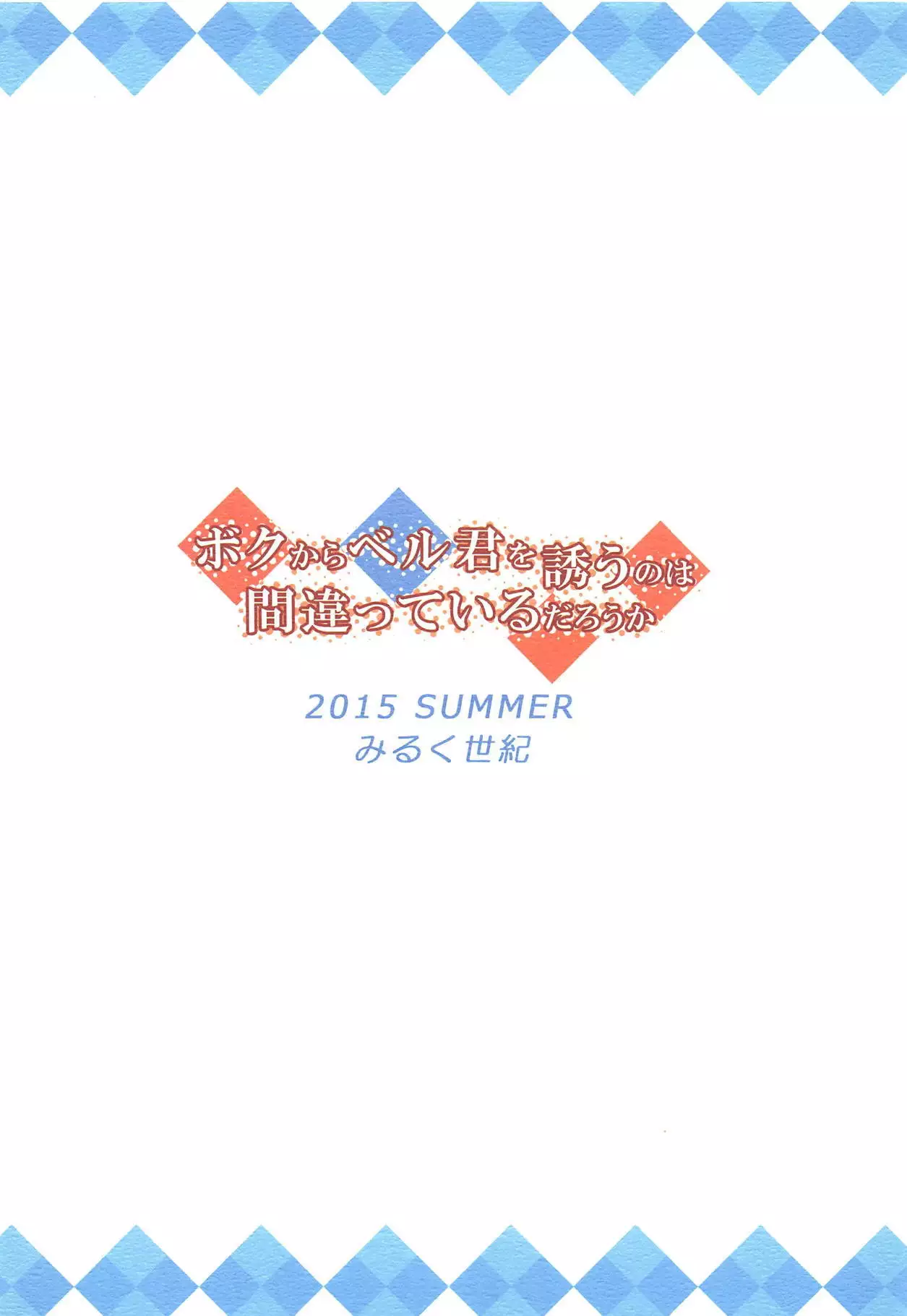 (C88) [Mirukuseiki (Sukoyaka Gyuunyuu)] Boku kara Bell-kun o Sasou no wa Machigatteiru Darou ka (Dungeon ni Deai o Motomeru no wa Machigatteiru Darou ka)
